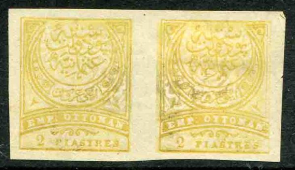 1890 Turkey Empire 2pi Imperf Pair Colour Proof