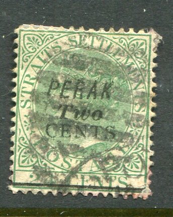 Malaysian States – Perak: 1891 overprinted on Strait Settlements 2c on 24c used. Sg 48