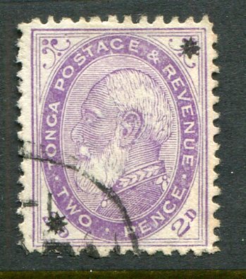 Tonga: 1891 (23 November). King George I star overprinted 2d. violet used. Sg. 8