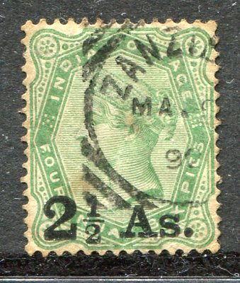 Zanzibar: 1891 India QV 2 1/2a on 4a.6p. struck by type Z5 Zanzibar datestamp. Sg. Z74