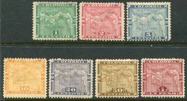 Panama: 1892-96 Issues for Colombia used in Panama used Map of Panama used set. Sc. 15/21