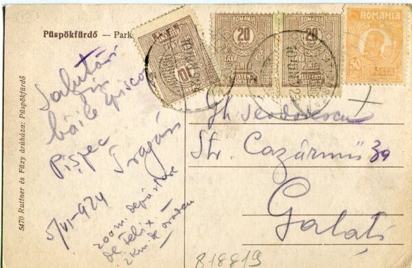 Romania: 1892 (10 June). Postcard of Galatz used locally franked with 50b, 10b and a pair of 20b Social Assistance charity stamps tied by Galati datestamps.