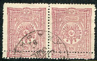 1892 Turkey 20pa Double Perf. Used Pair