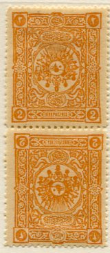 Ottoman Empire: 1892 (10 March). Coat of Arms definitive issue 2pi orange-brown mint o.g. foot to foot tete-beche vertical pair. Isfila 157 TB01