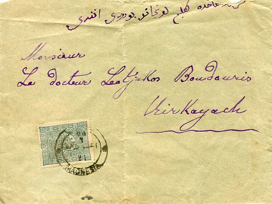 Ottoman Turkey: circa 1892 cover used locally to Kirkagaç franked with 1pi of coat of arms stamps and tied by MAGNISA – MAGNESIA (vilayet Aydin, A&P type 5, RRR) double circle datestamp.