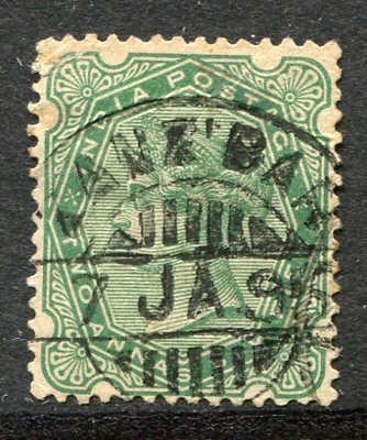 Zanzibar: 1892 India QV 2a.6p. yellow-green struck by type Z7 Zanzibar datestamp. Sg. Z94