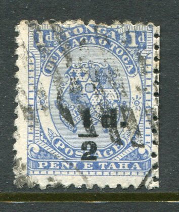 1893 Tonga Coat of Arms 1/2d black on 1d Used Sg 19