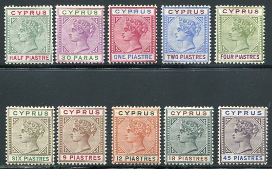 Cyprus: 1894 (14 August) – 96. Queen Victoria head die II wmk Crown CA mint o.g. set of ten. Sg. 40/49