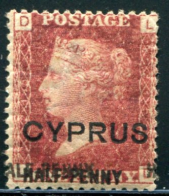Cyprus: 1881 (February – June). Queen Victoria penny red CYPRUS overprinted issue further surcharged 13mm. HALF-PENNY on plate 215 alphabet DL – LD mint part o.g. with surcharge double error. Sg. 9ab