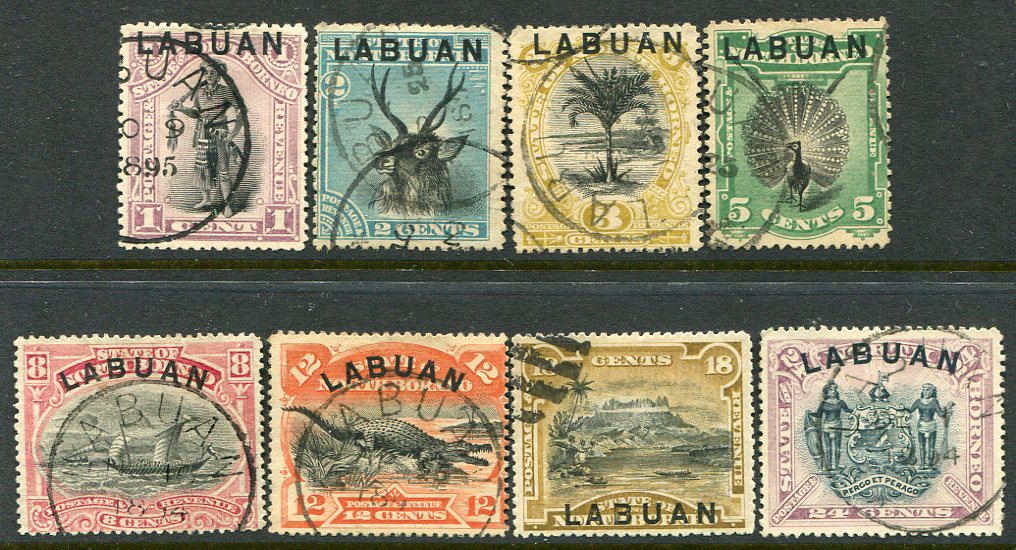 Labuan: 1894 North Borneo stamps overprinted LABUAN used values to 24c. pale mauve. 18c appears to be CTO. Sg. 62/73 (between)