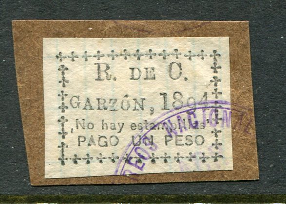 1894 Colombia Garzon 1 Peso Receipt Label quantity