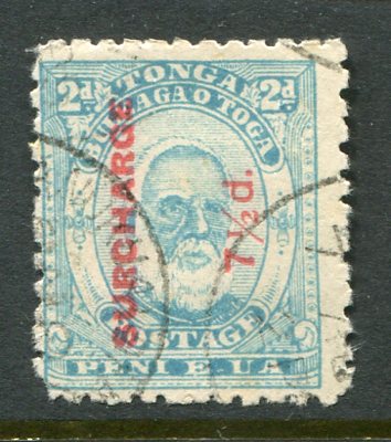 Tonga: 1895 (22 May). King George II portrait 7 1/2d on 2d. perf. 12×11 used. Sg. 28