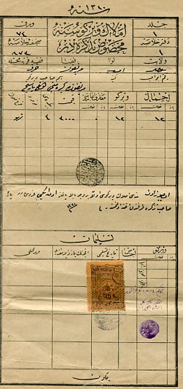 Ottoman Empire: 1894 Delivery Note franked with 10pa of 1891 Receipt and Acquaintances revenue stamp. Suleymaniye 4802