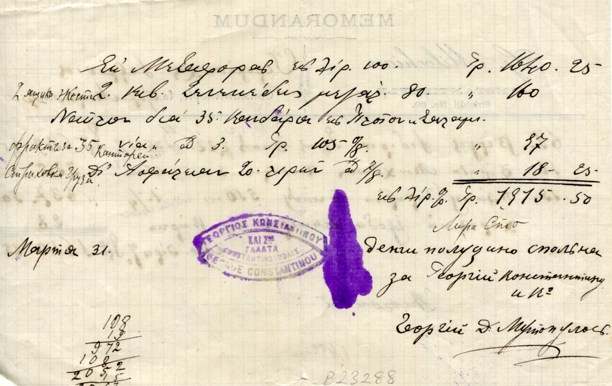 1894 Turkey Istanbul Armenian Merchant Memorandum quantity