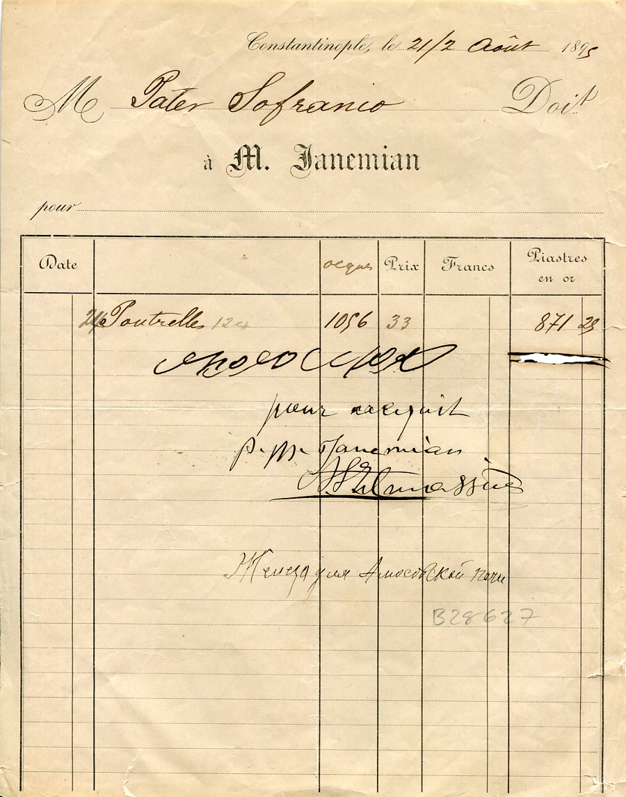 Türkiye: 1895 invoice imprinted Armenian merchant M. JANEMIAN from Constantinople.