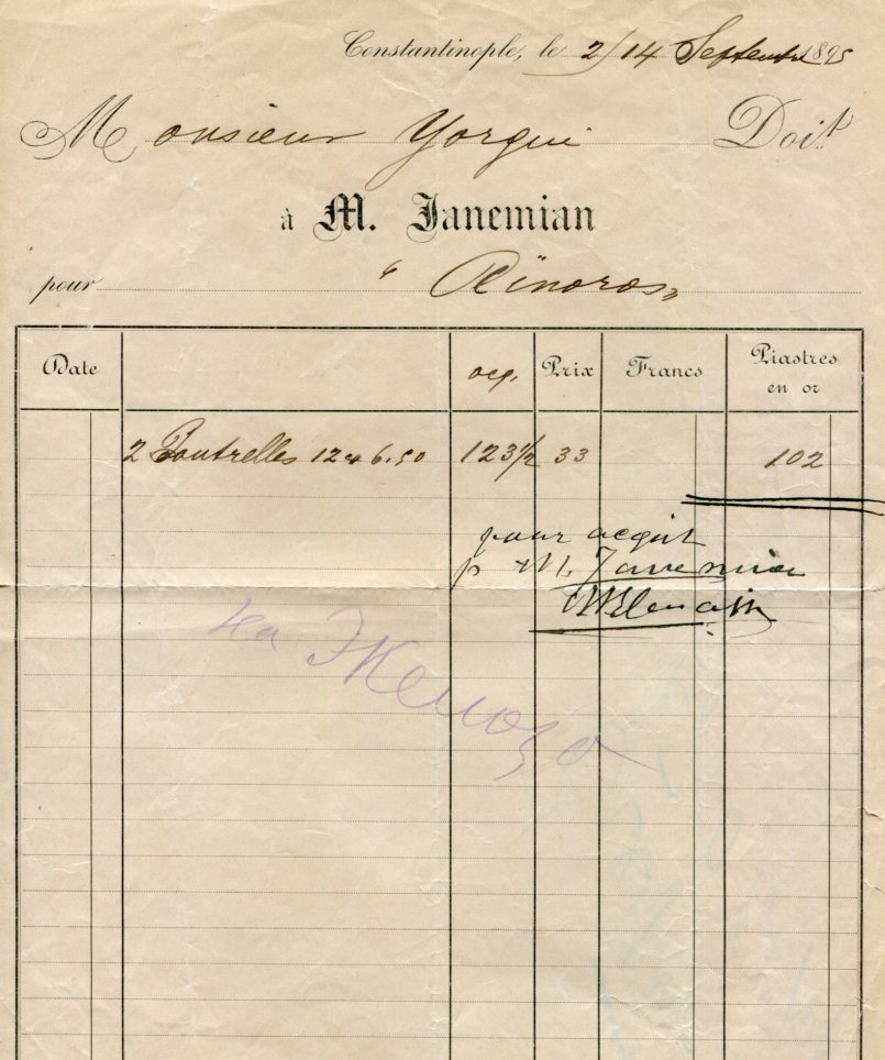 Turkey: 1895 M. Janemian, Constantinople imprinted invoice
