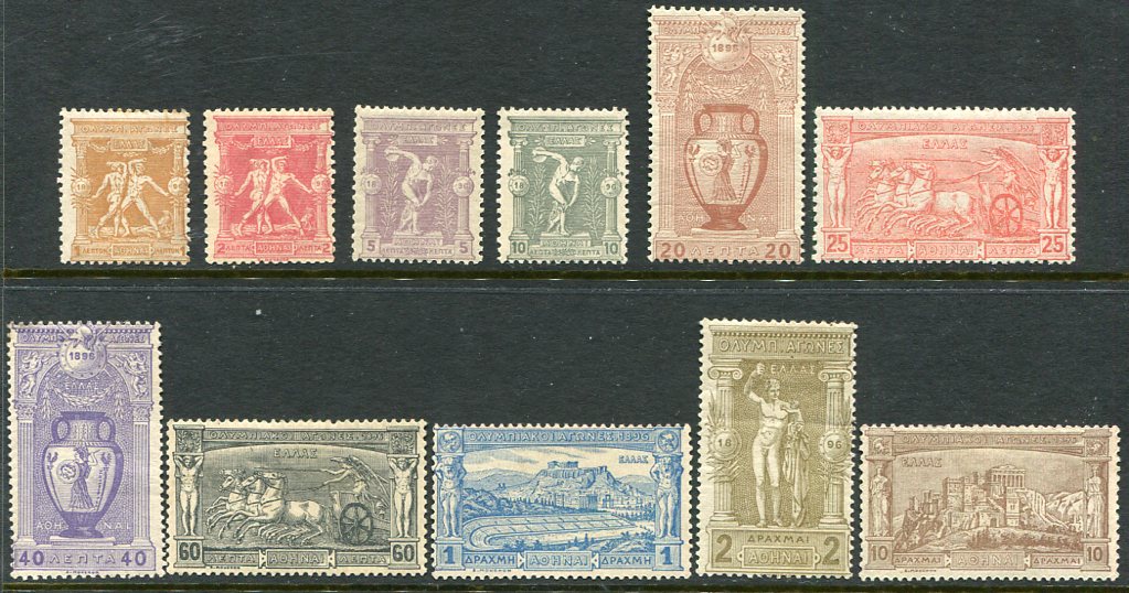 Greece: 1896 (25 March). First International Olympic Games mint o.g. values to 10d. Sg. 110/121 (between), Hellas 109/119 (no 119). *