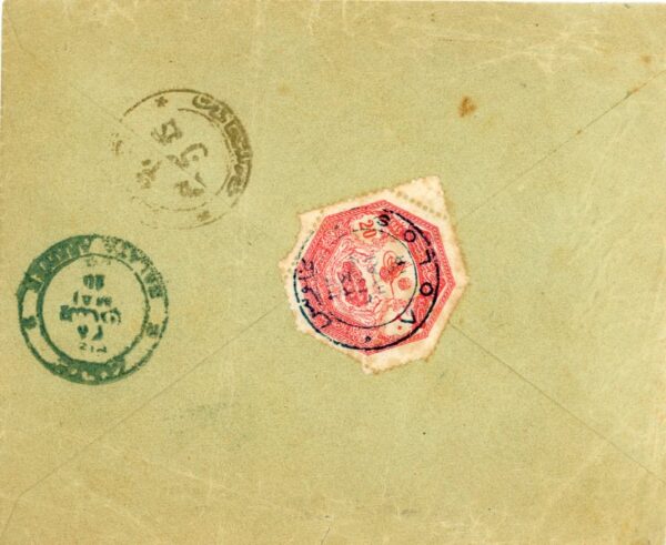 Greece Ottoman Post Offices: 1898 (8 May). Cover to Istanbul franked with 20pa of 1898 Thessaly Military Post octagonal stamp tied by GOLOS – VOLOS (vilayet Janina, GR #129, RR) datestamp and 10 May arrival cds’s. Cancellation does not tie to the cover.
