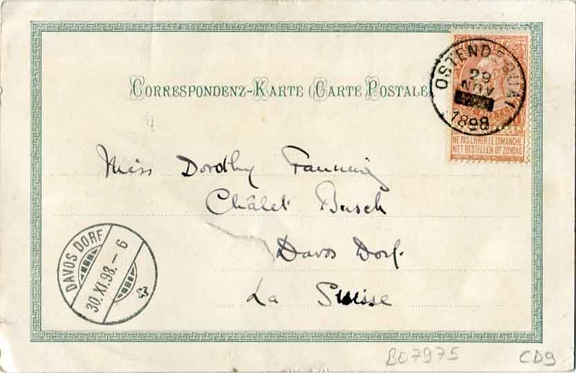 Belgium: 1898 (29 November). Smyrne postcard to Switzerland franked with 10f and tied by Ostend datestamp and 30 November Davos Dorf arrival cds. ed. Ottmar Zieher