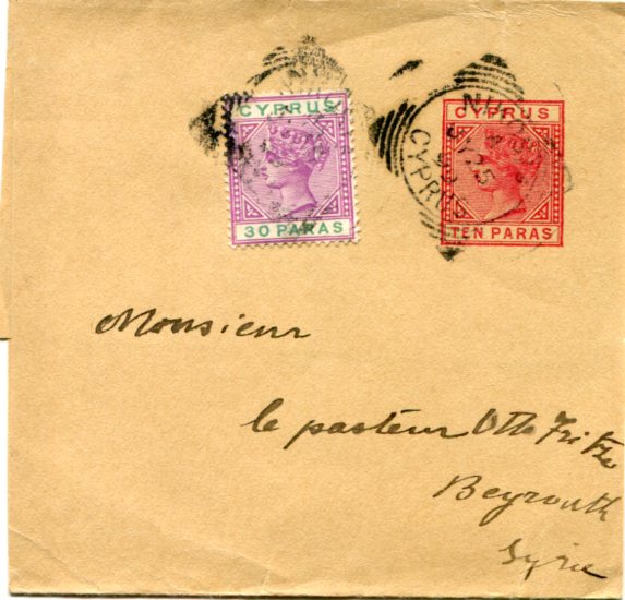1899 Cyprus Nicosia 10pa Wrapper to Beirut