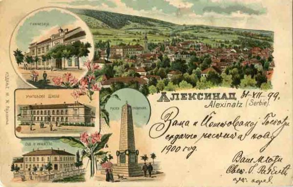 Serbia: 1899 (31 December). Picture postcard of Alexsinac franked on reverse with 5p and tied by ALEXINATZ date stamp. Scarce card.