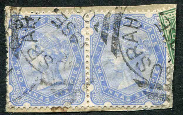 Iraq: Indian Post Office in Basra pair of 1900 QV 2a6p ultramarine stamp of India on piece struck by BUSRAH 19 September 190. datestamp. Sg. Z147