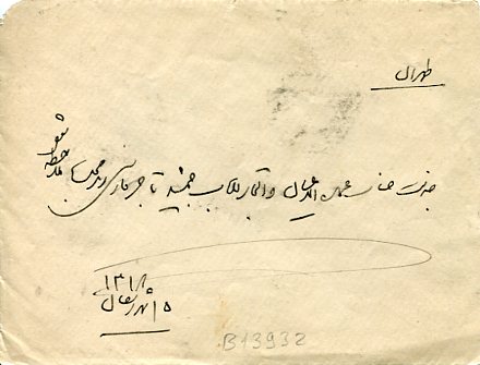 Iran: 1900 (January). Cover with its contents to Tehran franked with 5ch handstamped locally on 8ch coat of arms definitive stamp tied by TAURIS datestamps and Teheran arrival cds. Sg. 176