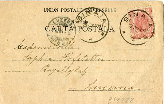 Romania: 1900 (28 June). Postcard of native costume woman (ed. Emile Storck) to Switzerland franked with 10b and tied by SINAIA datestamps and 1 July Luzern arrival cds.