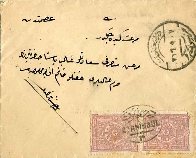 Ottoman Turkey: 1900 cover used locally franked with pair of 20pa of 1892 coat of arms issue and tied by bilingual oval STAMBOUL 3 handstamp.