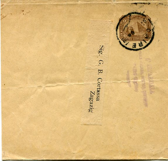 Egypt: 1900s folded complete 1m newspaper wrapper of 1889 for Italian magazine L’Imparziale to Zagazig struck by Caire datestamp. Balian 1