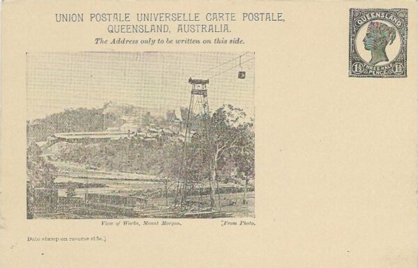 Australia – Queensland: c.1900 1½d picture stationery card ‘View of Works, Mount Morgan’, a gold and silver mine, square corner image fine unused