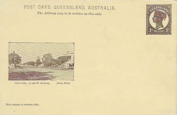 Australia – Queensland: c.1900 1d picture stationery card ‘Charleville, S. and W. Railway’, square corner image fine unused.