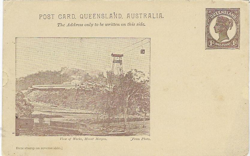 Australia – Queensland: c.1900 1d picture stationery card ‘View of Works, Mount Morgan’, a gold and silver mine, square corner image unused
