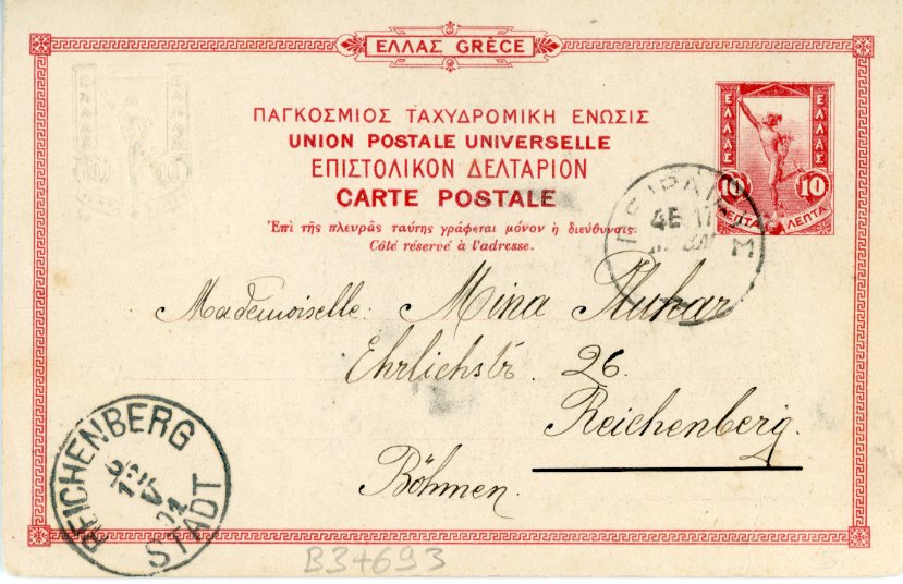 1901 Greece Philopappos Embossed 10l Picture Stationery 37 to Reichenberg