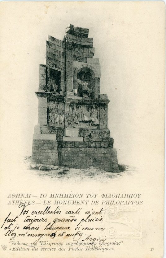 Greece: 1901 Philopappos Monument 10l. embossed 10l. picture stationery card #37 from Priaeus to Reichenberg, Germany.