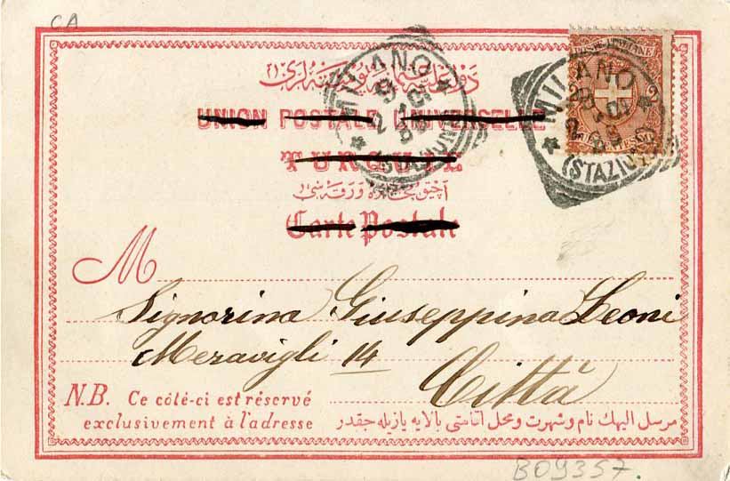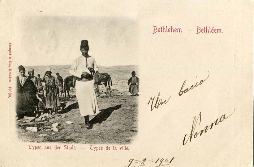 Italy: Picture postcard of Bethlehem titled ‘Types de la ville’ (ed. Stengel & Co.) used in Italy with Milano station datestamp on 1901.