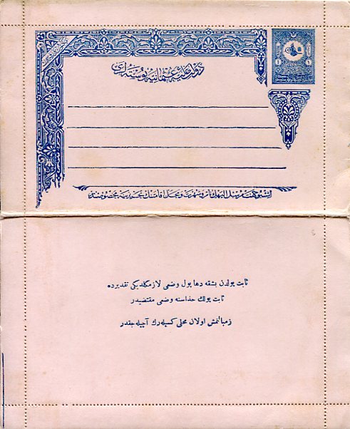 Ottoman Empire: 1901 unused 1pi internal use lettercard. Isfila AN59
