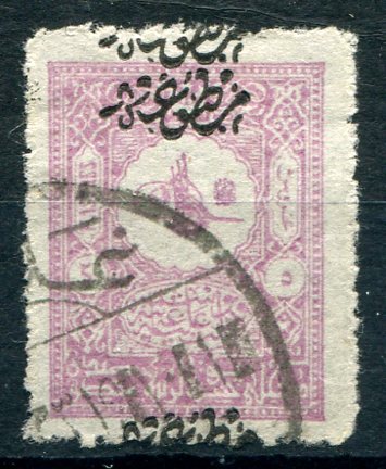 Türkiye: 1901 (14 March). Interior use printed matter overprinted issue 5pi used with overprint double error.