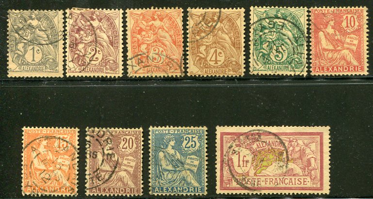 French Levant: 1902 (October)-21. French stamps inscribed Alexandrie used values to 1fr. Sg. 19/33 (between)