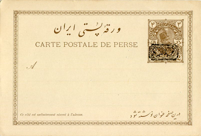 1902 Persia Provisoire 2ch Unused Stationery Card