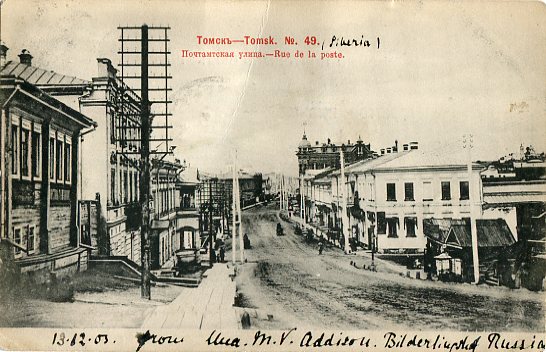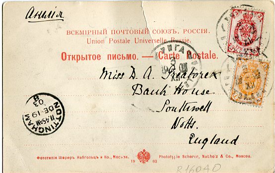 Russia – Latvia: 1903 (12 December). Postcard titled ‘Tomsk – Rue de la poste’ to England franked with 1k and 3k arms tied by Riga datestamps and 19 December Nottingham arrival cds.