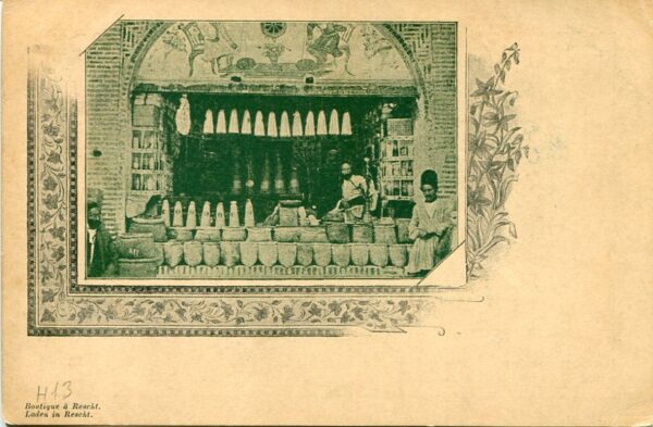 Iran: 1903 Enschede print ‘Boutique a Rescht’ titled 3ch handstamped in blue on 5ch unused picture postal stationery card.