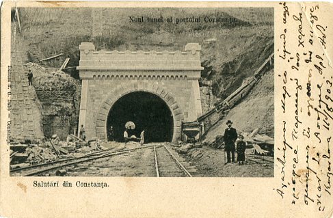 Romania: 1903 postcard of Constanta Railway Tunnel (ed. T.G. Dabo) to Galatz. Stamp fallen.