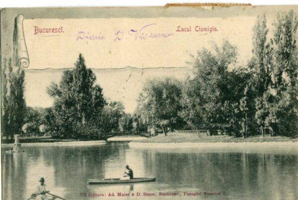 Romania: 1903 (21 July). Postcard of Lake Cișmigiu, Bucharest to France franked with 1b and 3b opening of new post office commemorative stamps tied by BUCURESTI datestamps. ed. Ad. Maier & D. Stern #771