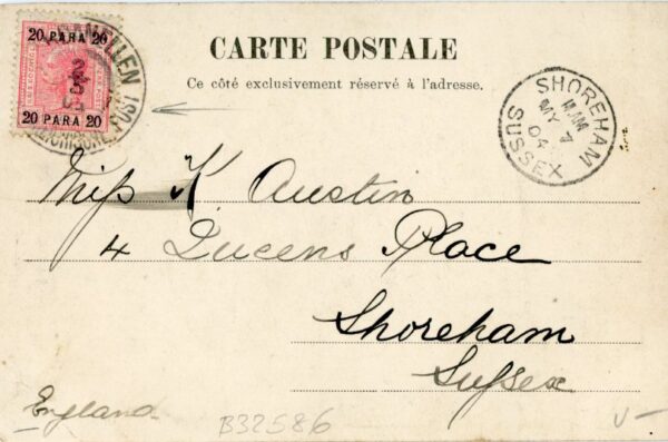 1904 Austria Levant Dardanelles Turkey to Shoreham