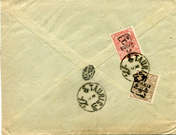 Iran: 1904 cover franked with 3ch on 5ch and 6ch on 10ch surcharged coat of arms stamps of 1904 tied by Tauris datestamps.