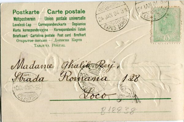 Romania: 1904 (24 January). Postcard used locally franked with 5b perf. 11 1/2 King Carol I portrait tied by Bucuresci datestamps.