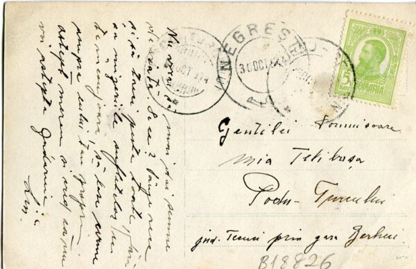 Romania: 1904 (28 October). Mignon beauty postcard franked with 5b and tied by TURNU – SEVERIN datestamp, 30 October NEGREST transit and next day PODU TURCULUI arrival cds’s.