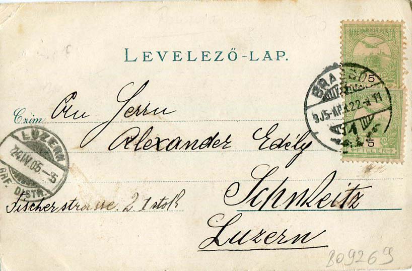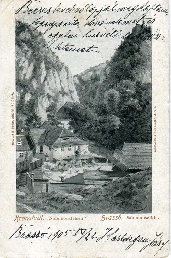 Romania: 1905 (22 April). Postcard of Brasov to Switzerland titled ‘Kronstadt Salomousfelsen Brasso’ franked with two 5f definitives tied by BRASSO datestamp and 24 April Luzern arrival cds.