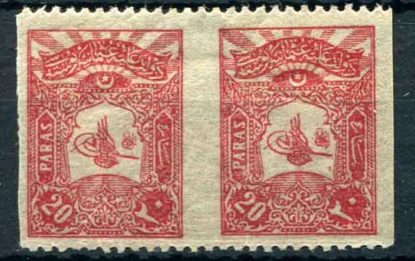 1905 Turkey 20pa IMPERF BETWEEN pair MLH